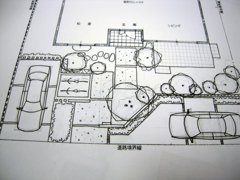 こちらはプランの下書きが終わって、ペンで仕上げた平面図。